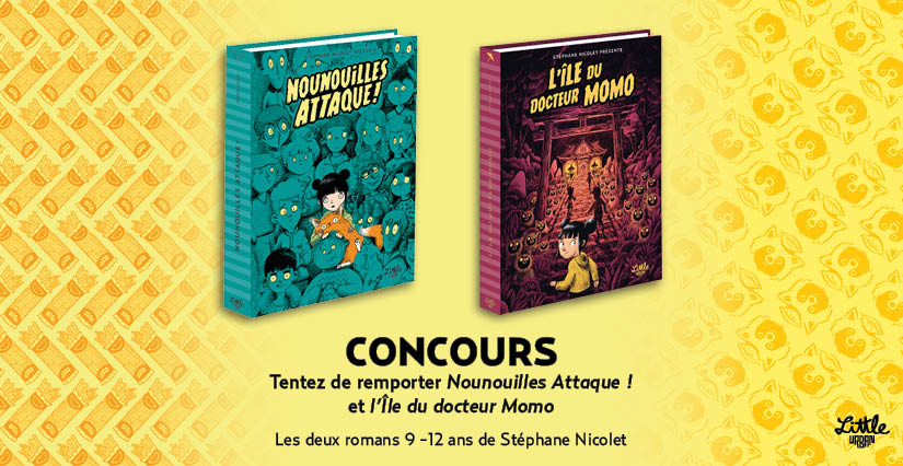 Les Éditions Little Urban et kidiklik vous offrent la série de romans pour les 9-12 ans de Stéphane Nicolet, à l'occasion de la sortie du roman L'Ile du Docteur Momo, une aventure semi-horrifique et 100% comique qui prend place dans le même univers que Nounouilles Attaque !