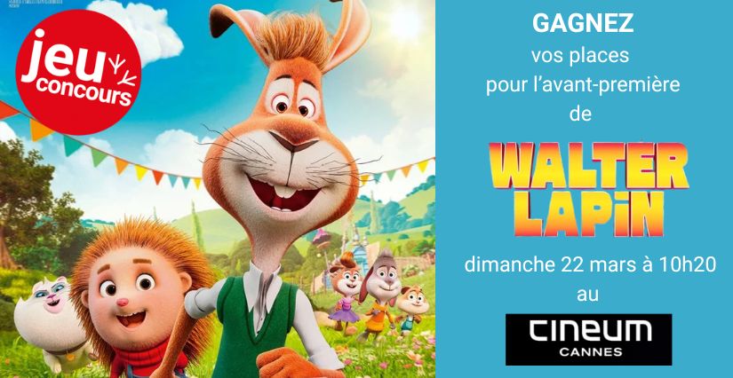 Kidiklik Côte d’Azur et le CINEUM Cannes vous invitent au cinéma le dimanche 22 mars 2026 ! Tentez votre chance pour remporter des places pour l’avant-première du film familial Walter Lapin.